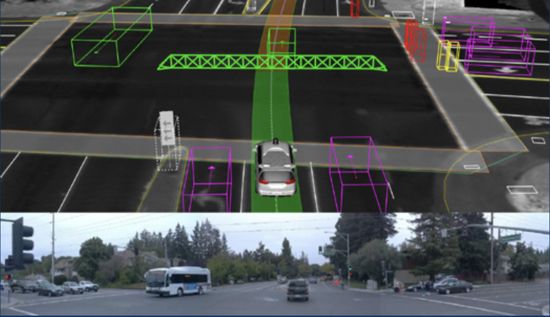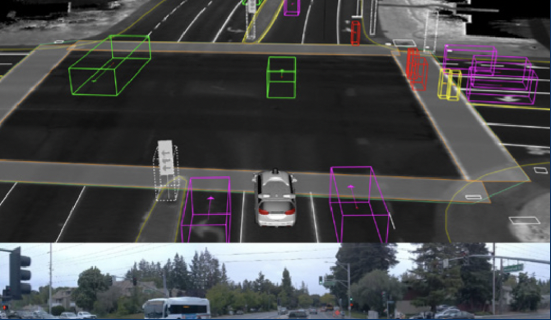 有了定位后,无人车的感知系统将通过传感器和人工智能算法将周围的障碍物位置、大小、状态、类别等标识出来。目前主流L4级别的传感器包括GPS/IMU、LIDAR、Camera、Radar等,LIDAR、Camera和Radar都是用于感知周围障碍物的主要传感器,分别在不同环境下能够有不同的优势。这些信息犹如人类驾驶员的眼睛一样看到周围动态环境物体,并将其识别出来,而无人车会利用自己多传感器和计算效率达到远超人类的水平,比如精准识别车辆后方任何物体、同时关注左右两边的车辆状态,在黑暗状态时可以通过激光雷达精准识别。