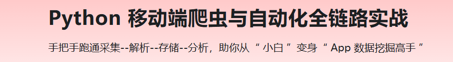 超过 80% 的高价值数据深藏于 App 之中,你是否正苦于不知道从何下手有效获取数据?手动搜集效率低下、难以规模化?面对多App、多设备同时运作的需求感到力不从心?因平台限制频繁受阻,拿到数据后也不知如何整理成直观有用的信息?本课程将提供一套完整破局之道:以“短视频”为实战场景,带你通过 “ 环境搭建 → 自动化控制 → 数据捕获 → 接口解析 → 群控调度 → 数据落地 → 可视化分析 → 反爬应对 ”全链路,系统的帮你从数据获取“ 小白 ”,蜕变为能自动化、多源头、高效率挖掘 App 数据价值,并应用于各类业务决策的 “ 掘金玩家 ”。