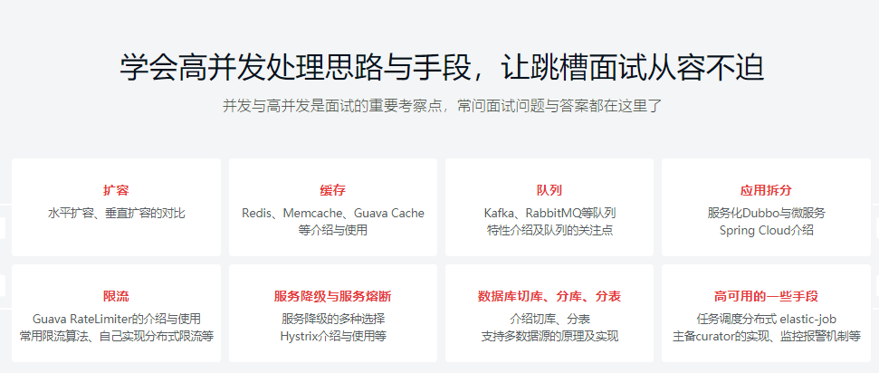 高并发部分:主讲思路,本章介绍了音讯行列的特性(事务无关、FIFO、容灾、性能)、为什么需求音讯行列以及音讯行列的优点(事务解耦、终究一致性、广播、错峰与流控),终究对当时比较盛行的音讯行列组件kafka和rabbitmq做了架构分析和特性介绍,如需深入学习请移步:https://coding.imooc.com/class/262.html。…