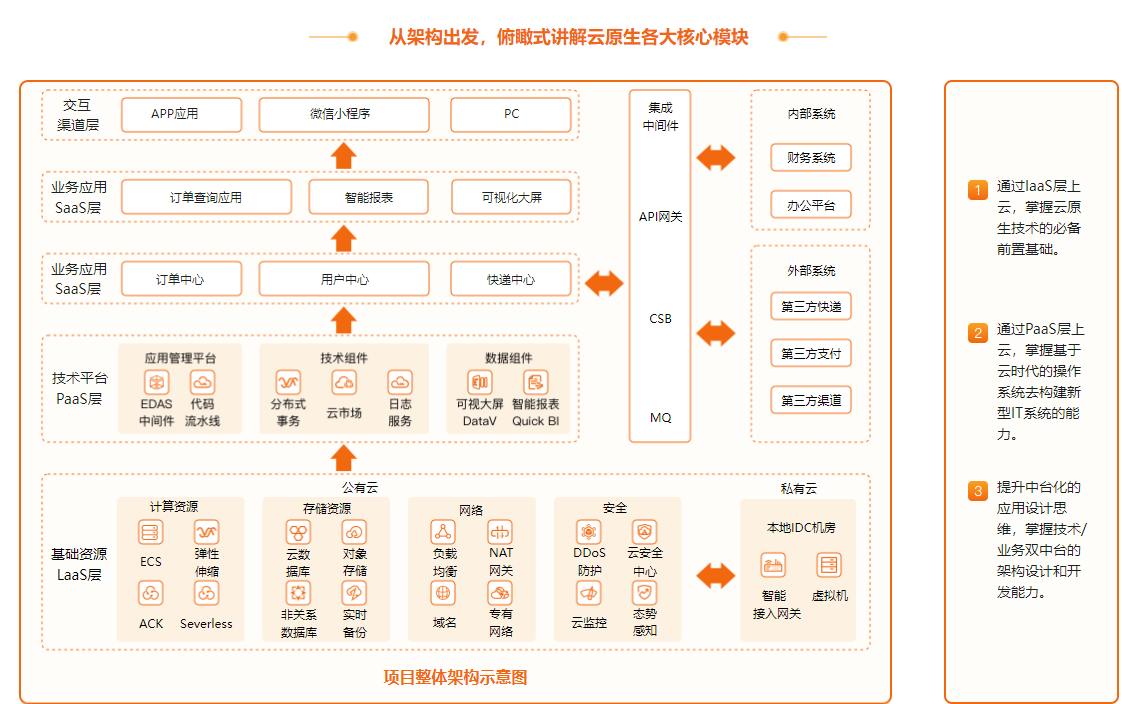 在All in Cloud时代,你不一定做云原生,但是必须要懂云原生,掌握云原生的开发者或架构师会更受企业的青睐–未来云原生应用也会逐步取代传统的本地开发应用。本课程基于阿里云平台将电商业务中台完整落地,带你全面掌握云原生的核心技术。快速提升业务、流程的分析和规划能力,更能掌握敏捷迭代开发并能破解各种痛点。