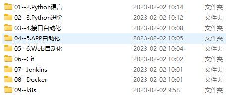 P5全栈测试Python自动化(进阶班)/ ├──01–2.Python语言 | ├──01–Python起源和特点 | | ├──1–1.1Python的特点.mp4 53.83M | | ├──2–1.2安装Python环境.mp4 12.08M | | ├──3–1.3IDLE开发环境.mp4 51.04M | | └──4–1.4第一个程序.mp4 54.04M | ├──02–基本数据类型 | | ├──1–2.1数字类型.mp4 74.09M | | ├──2–2.2字符串及其操作.mp4 62.90M | | ├──3–2.3索引和切片.mp4 27.53M | | ├──4–2.4字符串格式化之占位符.mp4 88.44M | | ├──5–2.5字符串格式化之修饰符.mp4 68.93M | | └──6–2.6章节回顾与应用.mp4 54.94M | ├──03–组合数据类型 | | ├──1–3.1列表和列表方法.mp4 54.67M | | ├──2–3.2列表的切片用法.mp4 34.42M | | ├──3–3.3元组和范围.mp4 36.07M | | ├──4–3.4字典.mp4 90.59M | | ├──5–3.5集合.mp4 14.58M | | └──6–3.6章节回顾与应用.mp4 54.06M | ├──04–程序控制结构 | | ├──1–5.1布尔值.mp4 29.91M | | ├──2–5.2分支结构.mp4 72.39M | | ├──3–5.3循环结构.mp4 51.88M | | ├──4–5.4异常处理.mp4 23.96M | | └──5–5.5章节回顾与应用.mp4 39.07M | ├──05–函数和代码复用 | | ├──1–6.1函数的定义和调用.mp4 17.12M | | ├──2–6.2函数的参数.mp4 63.16M | | ├──3–6.3函数的返回值.mp4 45.82M | | ├──4–6.4变量的作用域.mp4 41.67M | | ├──5–6.5匿名函数.mp4 16.35M | | ├──6–6.6内置函数.mp4 28.80M | | └──7–6.7章节回顾与应用.mp4 31.23M | ├──06–文件读写 | | ├──1–7.1打开文件.mp4 68.36M | | ├──2–7.2【练习】打开文件.mp4 29.92M | | ├──3–7.3读写文件.mp4 45.41M | | ├──4–7.4【练习】读写文件.mp4 9.43M | | └──5–7.5CSV文件处理.mp4 51.33M | ├──07–本周内容串讲、互动答疑 | | ├──1–第二次直播.mp4 440.74M | | └──1–第一周直播.mp4 471.10M | └──08–标准库与第三方库 | | ├──1–9.1impirt语法.mp4 53.43M | | ├──2–9.2csv模块.mp4 184.95M | | ├──3–9.3time模块.mp4 161.05M | | ├──4–9.4random和turtle.mp4 87.80M | | ├──5–9.5jieba和wordcloud.mp4 118.79M | | └──6–9.6reuqests和pyinetsller.mp4 111.21M ├──02–3.Python进阶 | ├──01–PyCharm集成开发环境 | | ├──1–2.1.创建和选择虚拟环境.mp4 61.06M | | ├──2–2.2运行代码.mp4 62.23M | | ├──3–2.3调试代码.mp4 36.49M | | └──4–2.4格式化代码.mp4 48.88M | ├──02–面向对象基础 | | ├──1–2.1为什么要学习面向对象.mp4 102.34M | | ├──2–2.2封装和多态.mp4 91.72M | | ├──3–2.3非class语法解决数据隔离.mp4 64.93M | | ├──4–2.4class语法解决数据隔离.mp4 117.00M | | ├──5–2.5class语法最终改进.mp4 101.92M | | ├──6–2.6什么时候应该使用class.mp4 139.46M | | ├──7–2.7类和类的实例对象.mp4 60.23M | | ├──8–2.8类成员和实例成员.mp4 100.55M | | └──9–2.9从class到OOP.mp4 128.49M | ├──03–本周内容串讲,互动答疑 | | └──1–第三周直播.mp4 457.43M | ├──04–日志记录的用法 | | ├──1–4.1为什么要使用日志记录.mp4 25.04M | | ├──10–4.10基于文件的集中配置.mp4 135.07M | | ├──2–4.2basicConfig函数.mp4 101.18M | | ├──3–4.3日志等级.mp4 62.45M | | ├──4–4.4日志格式.mp4 94.31M | | ├──5–4.5日志处理方式.mp4 83.18M | | ├──6–4.6日志记录流程.mp4 33.11M | | ├──7–4.7创建和配置logger.mp4 129.59M | | ├──8–4.8多个模块中使用logger.mp4 104.58M | | └──9–4.9日志处理器和格式化对象.mp4 117.18M | ├──05–unittest的测试框架 | | ├──1–5.1基本用法.mp4 107.10M | | ├──2–5.2测试发现规则.mp4 83.09M | | ├──3–5.3环境准备和销毁.mp4 189.66M | | ├──4–5.4使用断言方法.mp4 214.07M | | ├──5–4.5用例的组织和筛选.mp4 132.40M | | ├──6–5.6第三方插件HTMLTestRunner.mp4 167.09M | | ├──7–5.7第三方插件green.mp4 119.99M | | ├──8–5.8第三方插件parameterized.mp4 149.76M | | └──9–5.9第三方插件ddt.mp4 104.78M | ├──06–基于线程的并发编程 | | ├──1–6.1Thread实现多线程.mp4 94.66M | | ├──2–6.2ThreadPoolExecutor实现多线程.mp4 118.25M | | ├──3–6.3【练习】左右互搏.mp4 53.22M | | ├──4–6.4终止线程.mp4 57.68M | | ├──5–6.5线程通信.mp4 107.50M | | ├──6–6.6【练习】:生产者和消费者.mp4 143.57M | | ├──7–6.7锁的基本用法.mp4 82.67M | | ├──8–6.8死锁.mp4 147.20M | | └──9–6.9【练习】多线程采集网页.mp4 51.32M | ├──07–基于多进程的并发编程 | | ├──1–7.1为什么使用多进程.mp4 42.82M | | ├──2–7.2多进程的基本用法.mp4 61.38M | | └──3–7.3多进程和多线程的区别.mp4 100.17M | ├──08–基于协程的并发编程 | | ├──1–8.1 yield关键字和生成器.mp4 61.96M | | ├──2–8.2 yield高海拔程序执行顺序.mp4 64.97M | | ├──3–8.3 asyncio模块和第三方库.mp4 74.72M | | ├──4–8.4 async和wait关键字.mp4 56.50M | | ├──5–8.5 【练习】基于线程的网页爬虫.mp4 123.38M | | ├──6–8.6【练习】基于协程的网页爬虫.mp4 177.76M | | └──7–8.7 并发方案的选择.mp4 16.42M | ├──09–本周内容串讲、知识答疑 | | └──1–第五周直播.mp4 526.36M | ├──10–Socket编程(上) | | ├──1–11.1socket协议概要.mp4 60.37M | | ├──2–11.2创建socket对象.mp4 93.78M | | ├──3–11.3socket对象.mp4 123.42M | | └──4–11.4测试驱动开发的步骤.mp4 88.74M | ├──11–Socket编程(下) | | ├──1–12.1重构ser