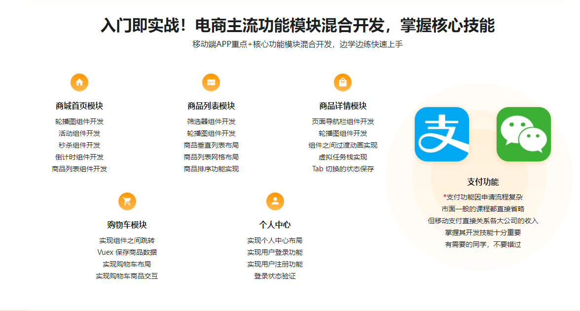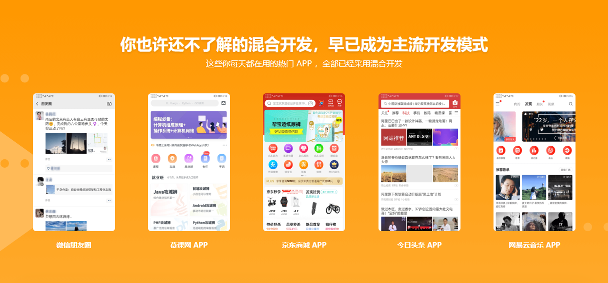 无需原生开发基础,也能完美呈现京东商城。本课程融合vue、Android、IOS等目前流行的前端和移动端技术,混合开发经典电商APP——京东。课程将各种复杂功能与知识点完美融合,从技术原理到开发上线,让你真实感受到一个明星产品开发的全过程。功能实现之外,还有一流用户体验和优秀交互设计等你一探究竟,拓宽开发眼界。