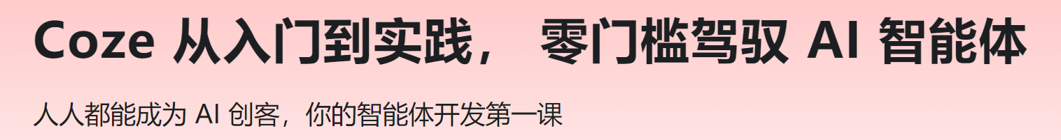 在AI重塑行业浪潮中,Coze作为领先智能体开发平台,让零代码/低代码开发变得触手可及。本课程带你高效掌握Coze核心功能,快速上手智能体应用开发。采用“基础筑基(掌握核心操作,构建简单应用)→高阶进阶(性能优化、复杂逻辑与部署管理,打造商用方案)→项目实战(客服、推荐等真实场景锤炼技能)”的黄金学习路径,助力零基础学员快速落地AI创意,玩转智能体开发。