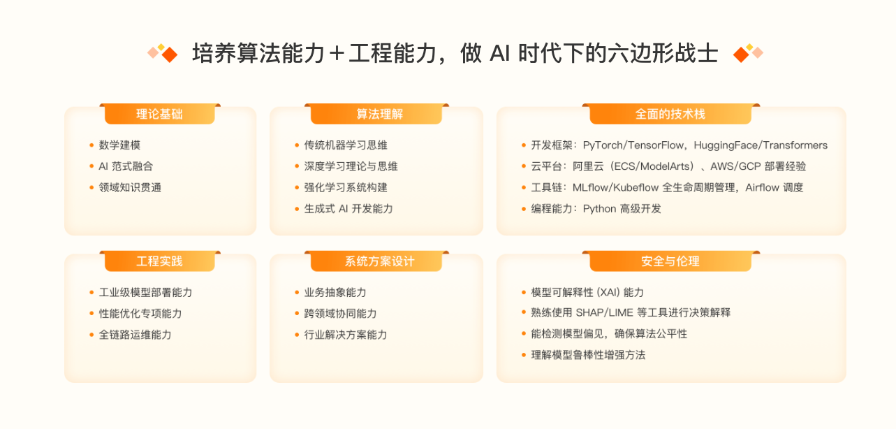 ● 工程能力培养:覆盖模型部署和推理优化、自动化运维、SHAP 公平性审查