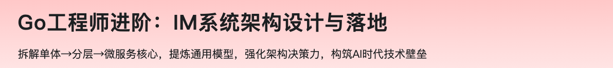 AI 正在重构开发范式,编码门槛降低,而驾驭复杂系统的架构能力,正成为开发者最大的价值壁垒。本课程以技术密度高、设计扩展性强的IM系统为实战载体,聚焦架构设计。我们不仅深度剖析单体→分层→微服务的核心组件,更深入其底层逻辑,并从中提炼出通用设计模型。助你不仅能攻克高并发、分布式等核心难题,更能全面提升驾驭复杂系统的架构设计灵活性与决策力,加速构筑起AI不可替代的技术护城河!